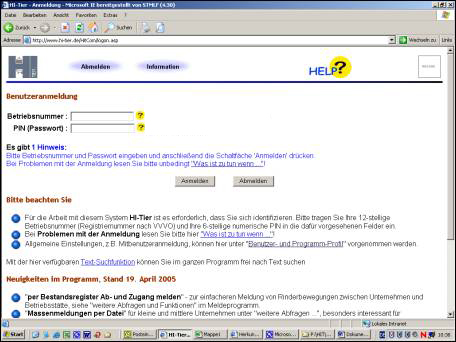 Auswahlmenü HoftierarztUnter der Internet-Adresse www.hi-tier.de kann die Homepage der zentralen Datenbank HI-Tier aufgerufen werden.