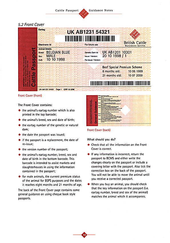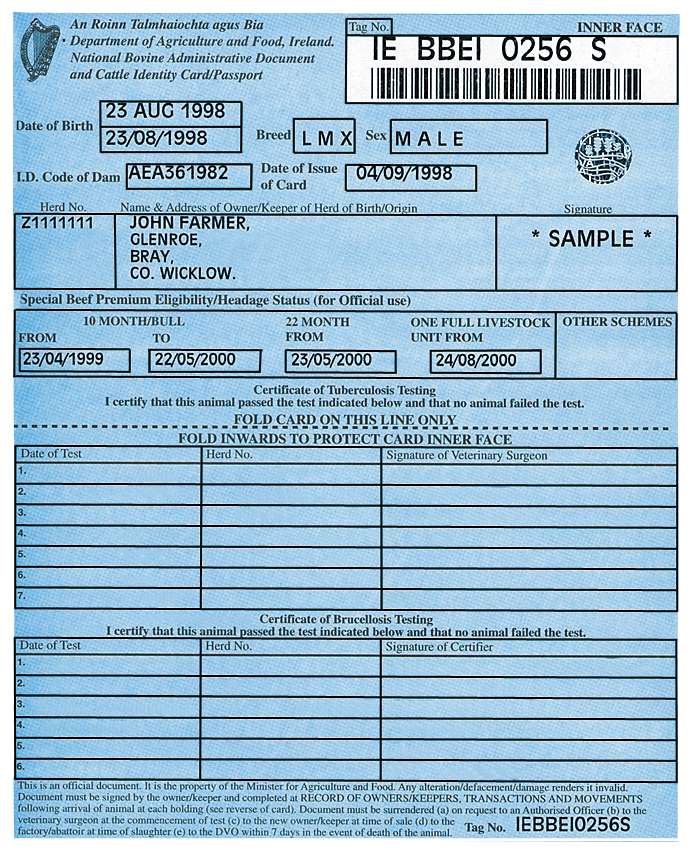 dem 28. September 1998 registriert wurden, ein Rinderpass in Form eines
