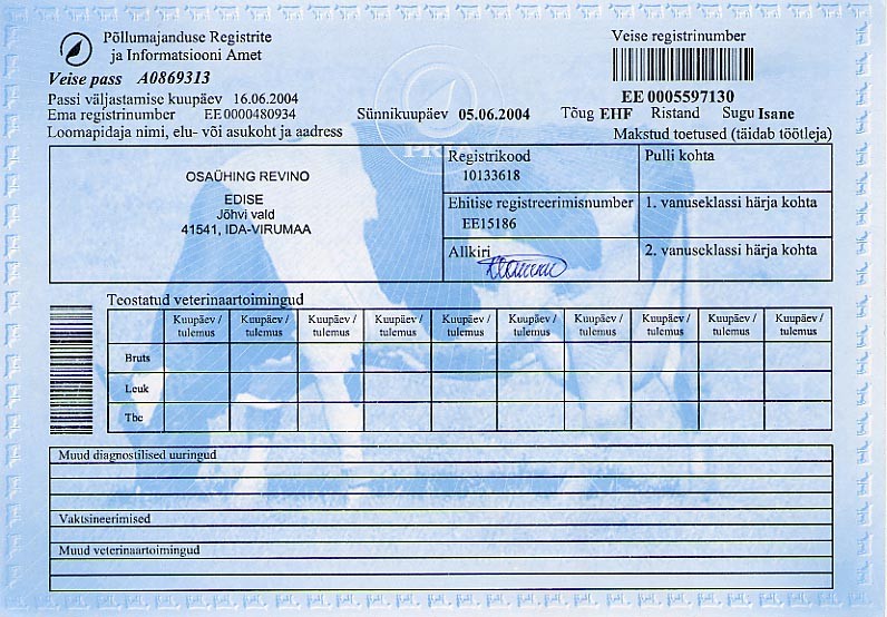 Hinweis: Bei männlichen Tieren ist der Tierpass blau |