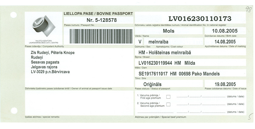 männlichen Tieren auch der Prämienstatus im Rinderpass vermerkt.