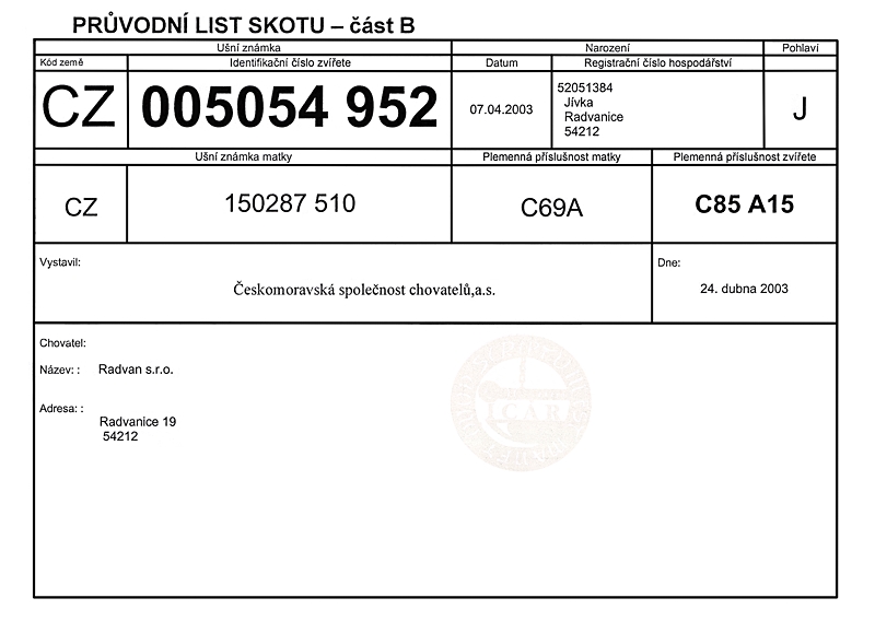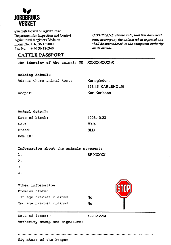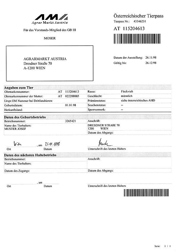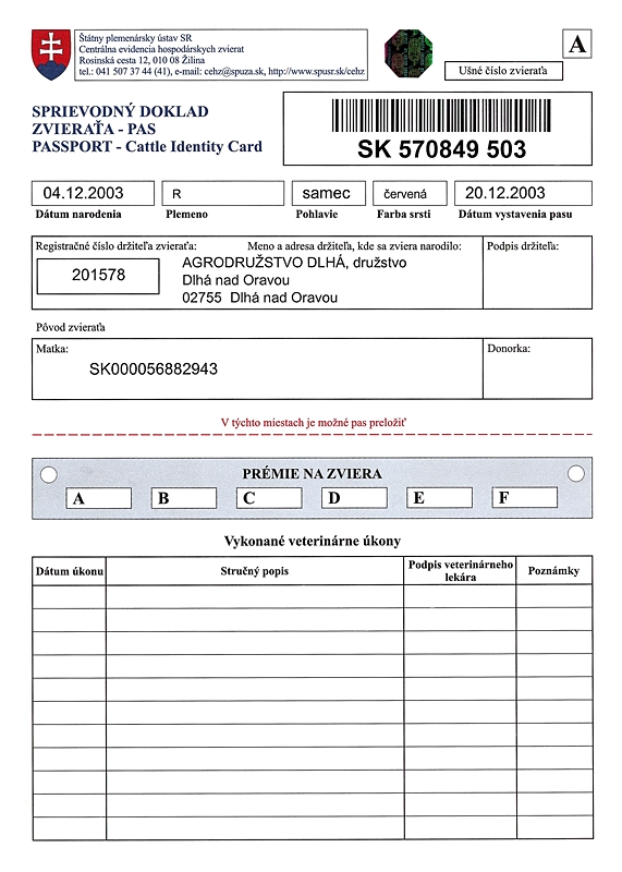 Ohrmarke und des Passes auftreten (siehe Slowakei). Daher ist das o.g. Beispiel als Vorgabe für die