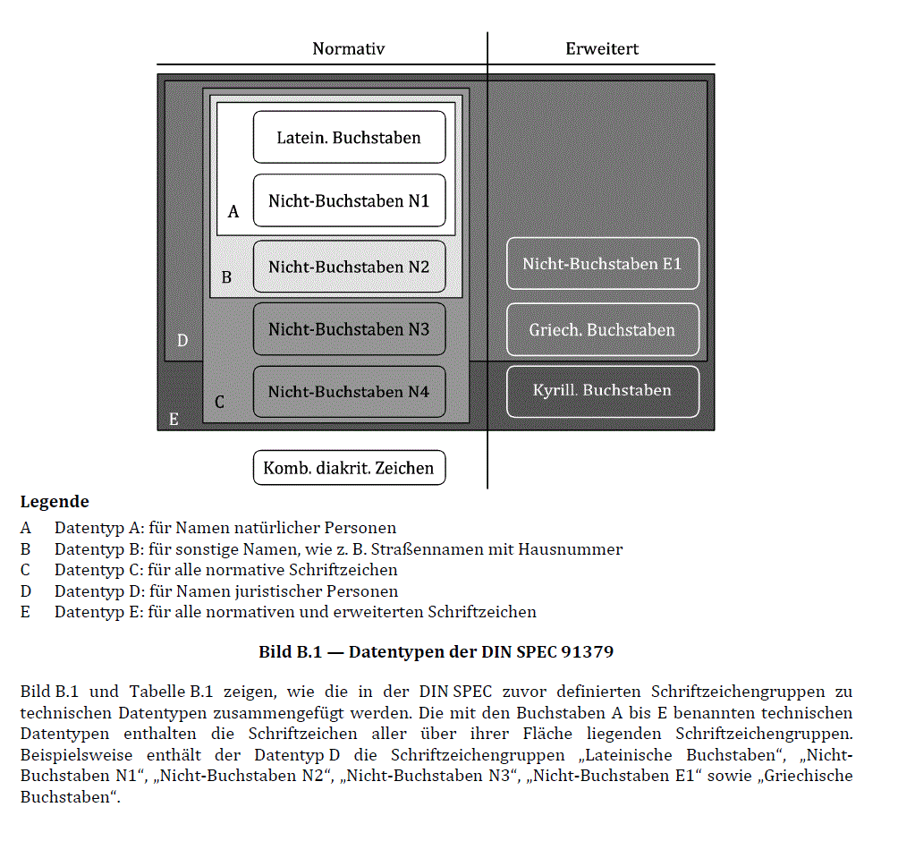 in Unicode gemäß "Datentyp E: Alle nach DIN SPEC 91379 normativen und