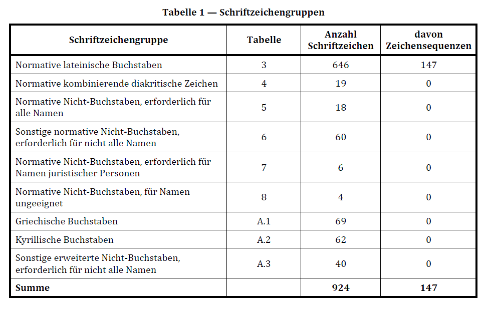 erweiterten Nicht-Buchstaben nach den Tabellen 6, 7 und A.3. |