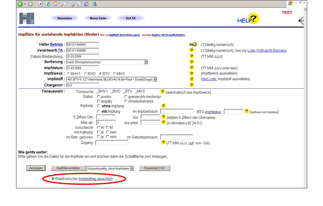 Der Landwirt kann entweder selbst eine Impfliste ausdrucken oder