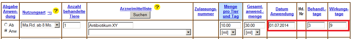 Die angegebene Anzahl der Behandlungstage ist relevant für die Ermittlung der Wirkungstage (für Nutzungsarten im Antibiotikamonitoring ABM).