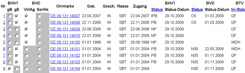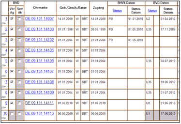 bulletalle Tiere im Bestand bzw. nach obiger Tierauswahl (nur in der erweiterten Maske)