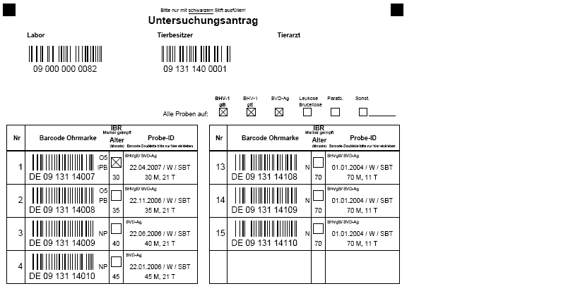 Der Untersuchungsantrag in maschinenlesbarer Form ermöglicht dem Untersuchungsinstitut den Barcode zur Ohrmarke in Verbindung mit der Barcode-Dublette des Probenröhrchens einzuscannen; es wird damit  eine zügige Abarbeitung der Untersuchungsaufträge erreicht. Ablese- oder Schreibfehler im Stall - wie sie bei handschriftlich ausgefüllten Anträgen häufig vorkommen, werden somit vermieden. Damit ist auch eine sichere Zuordnung der Probe zum Tier gewährleistet.