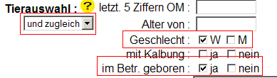 Mit dieser Option ist der Gesamtbestand bzw. sind die Rinder nach der Tierauswahl als zu untersuchend aktiviert (Häkchen automatisch gesetzt).